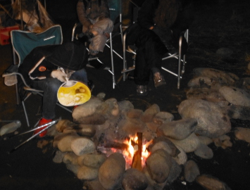 焚き火の暖は、必須