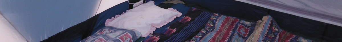 ブランケット 我が家は、シュラフの上に大き目のブランケットを3つ重ねている。大きめのこのブランケットは、大人1名+子ども2名をカバーできる。これを二つかけ、さらに普段利用していない古くなったコタツ掛け布団(手前の緑色)。我が家は、これら普段利用していないブランケットをキャンプの寒さ対策に利用し気候に応じて枚数を調整し利用している。 |