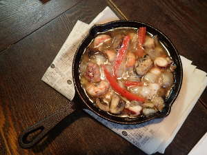 アヒージョアヒージョは、スペイン語で「ニンニク風味」を意味しオリーブオイルとニンニクで煮込むマドリード以南の代表的な小皿料理(タパス)のひとつ。 本場でも、必ずスキレットを使う。ニトスキは、保温性に優れ冷めにくいので最後までおいしく温かいアヒージョを食べることができる。 ニトスキは、最後までおいしく温かい料理に最適な調理器だ。 |