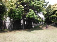 サイト裏側の木 サイト裏側には、木がある。風対策としてタープ固定に充分使える木なので利用しない手はないだろう。木の利用の仕方でタープの配置が決まるサイトだ。 |