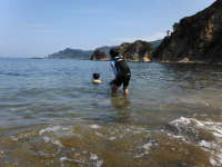 7月28日、29日と「キャンプ黄金崎」でキャンプをし、キャンプ場の目の前にある「願愛海岸」でシュノーケリングを楽しんだ。「願愛海岸」は穴場的な海岸で、湾になっており波の影響を受けにくく比較的穏やかな海岸。
