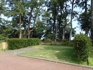27番~31番サイトは、海岸に近い。舗道を挟み正面にはサイトがある。炊事棟、トイレ棟が少し遠くなる。