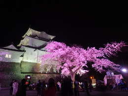 風流なボンボリ夜桜と様々な光に照らしだされる幻想的な天守閣の夜桜ライトアップ
