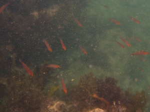 今回は、水中に多くのアカヒトデがあちらこちらにいた。海藻の中で、ひときわ色鮮やかに目立っていた。