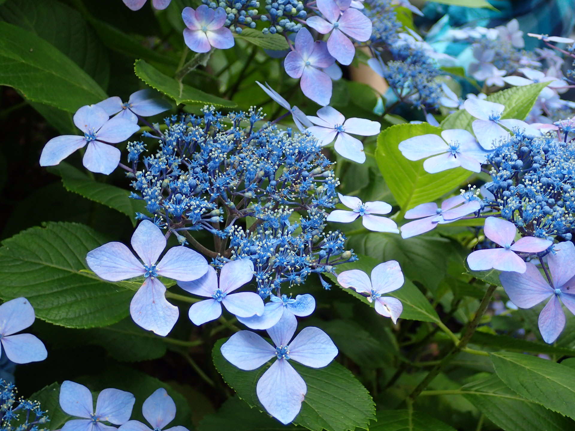 多種多様のあじさいが咲き乱れる |
