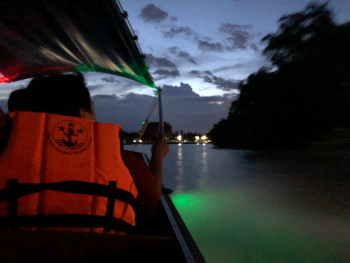 夜は、ツアーボートと屋台船が入り乱れ